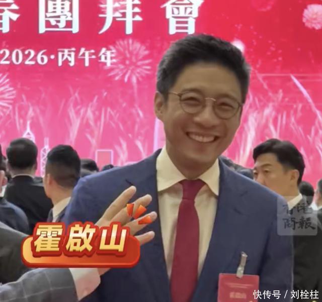 另一边,霍英东家族在场,走的是另一条路。第二代的霍震寰,76岁,仍然精神。他对着镜头,笑,主动靠近人群,参与合照,显得很亲。他是家族里管商业的第一把手,习惯第一线。他在场,不只签到,他把“在场”做成动作。再看第三代。霍启山穿蓝色外套,白衬衣,红领带,整个人精神又帅。他大方,活跃,全程笑,跟不同宾客交流,成了最受欢迎的那位。他不只是家族副主席,还在公职里发光。他把年轻这件事用得很稳。